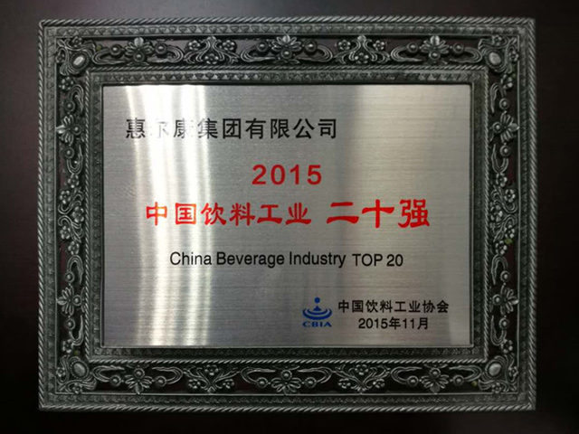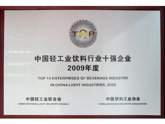中國輕工業(yè)飲料企業(yè)十強企業(yè)牌匾