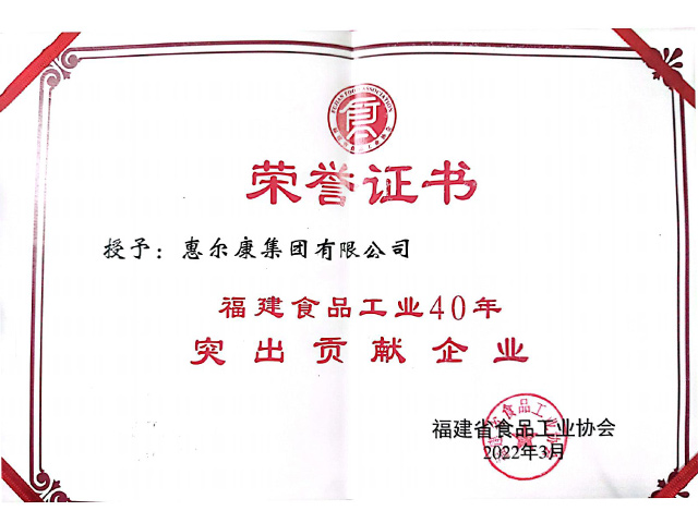 榮獲福建省食品工業(yè)協(xié)會-福建食品工業(yè)40年突出貢獻企業(yè)